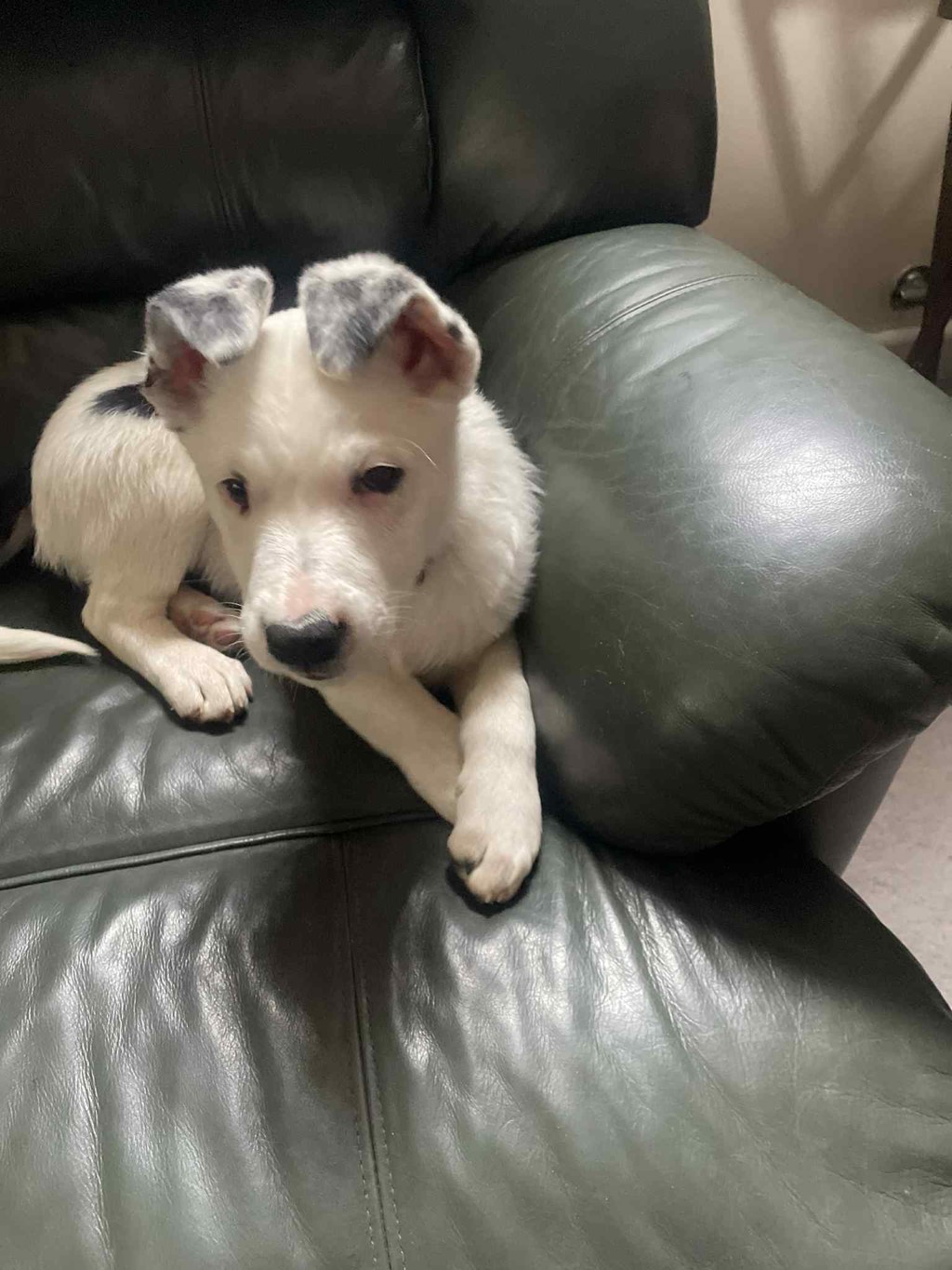 Snow is a unique blend of Kelpie, Border Collie, and Cattle Dog, with a thoughtful and observant nature. While he carries the energy and intelligence of his working breed mix, it's the classic Border Collie trot that often gives him away. Quiet and contemplative, Snow tends to take in the world with a calm curiosity, always thinking before he acts.