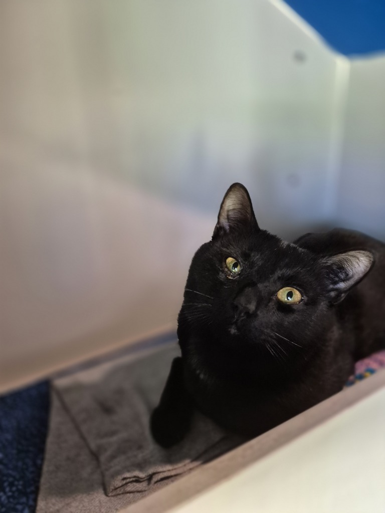 Stormy is a sleek and handsome black cat with a gentle soul. A little shy at first, he takes a bit of time to warm up - but once he does, he's a sweet and loyal companion. Stormy feels most confident with his best friend Charlie by his side, and they truly bring out the best in each other. While he'd love to be adopted with Charlie, Stormy could also settle in on his own with a patient and loving adopter. If you have a quiet home and a kind heart, Stormy might just be your perfect match.