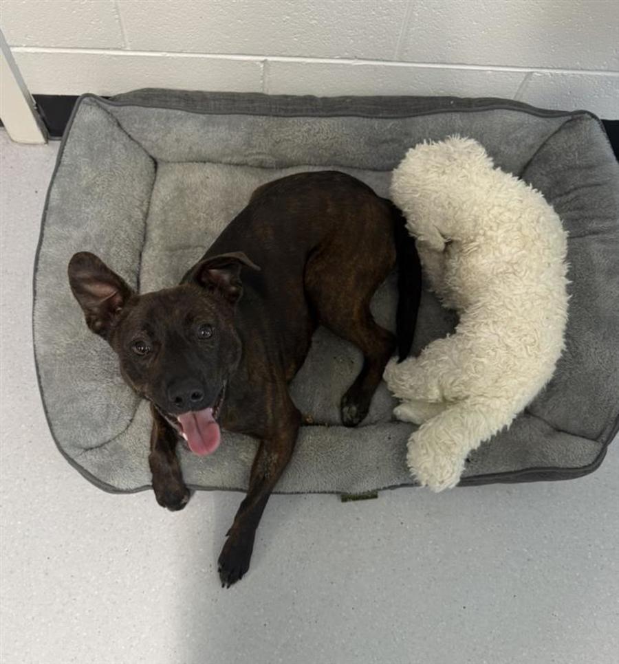 Meet Socks, a lively and lovable Staffy who's ready to be your new best friend! This spirited lady adores every aspect of life, from making new human friends to playing with her fellow canine companions. Her enthusiasm is boundless, and she brings joy to every encounter with her infectious energy and warm heart.