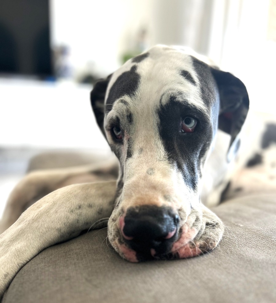 Majic is an extremely well cared for and much-loved family member. He’s hardly spent a moment away from retired parents. Sadly, Majic and the other older male Dane of the home have started to have issue with each other, and so their owners have had to make this heart-breaking decision.