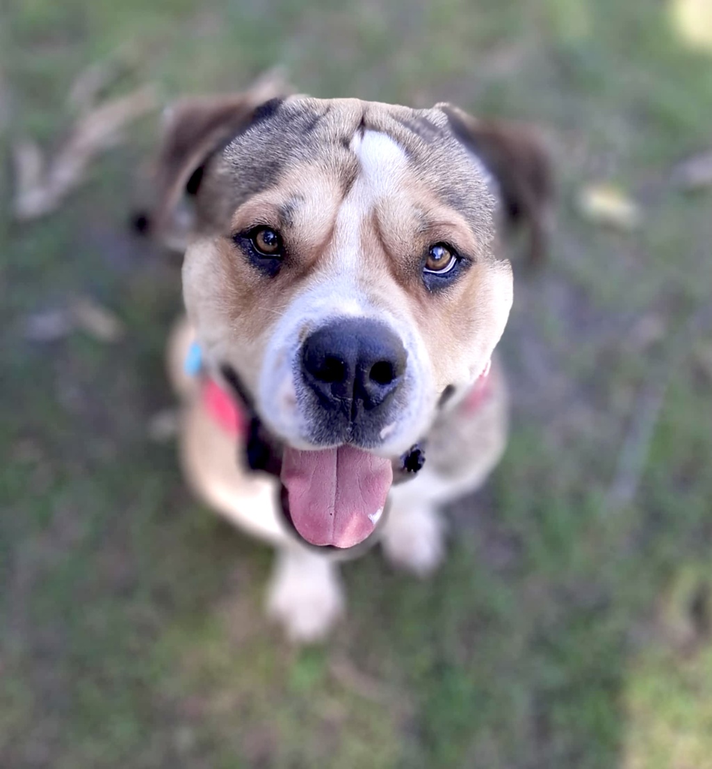 We know little about his past, but we can talk on what we have discovered about him whilst he has been in shelter. Sunny is a super sweet & affectionate boofy headed kind of guy! He loves his toys & is always ready to have a game: tug, fetch, soccer, whatever you want!