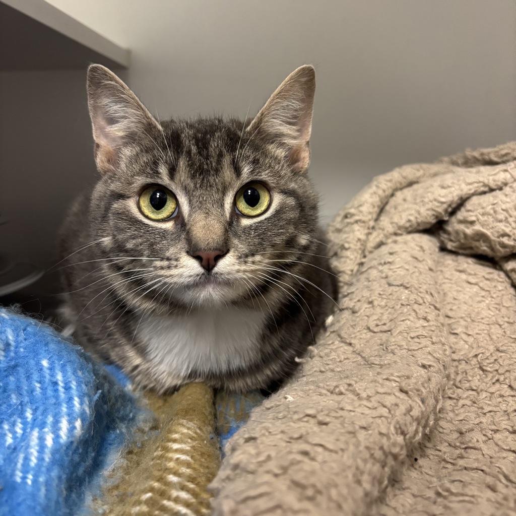 I've done well in a foster home with another cat, but here in the shelter, everything feels a little too bright, a little too loud. Give me some time, and I'll start to show you who I really am: playful, affectionate, and loyal to the right person. I love rubbing noses with my human, kisses on the head and full on neck rubs and body pats.