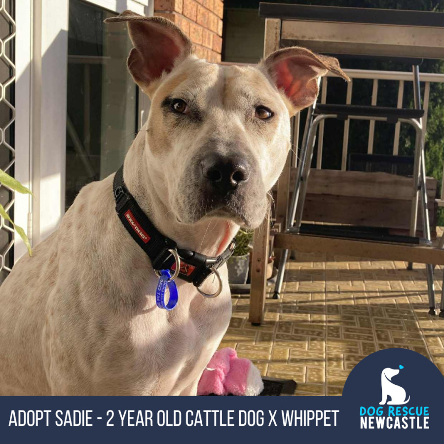 Sadie is in foster care in Wallsend, NSW. She is not available for adoption interstate. Her adoption fee is $500 and she is desexed, vaccinated, treated for fleas and worms, and microchipped.