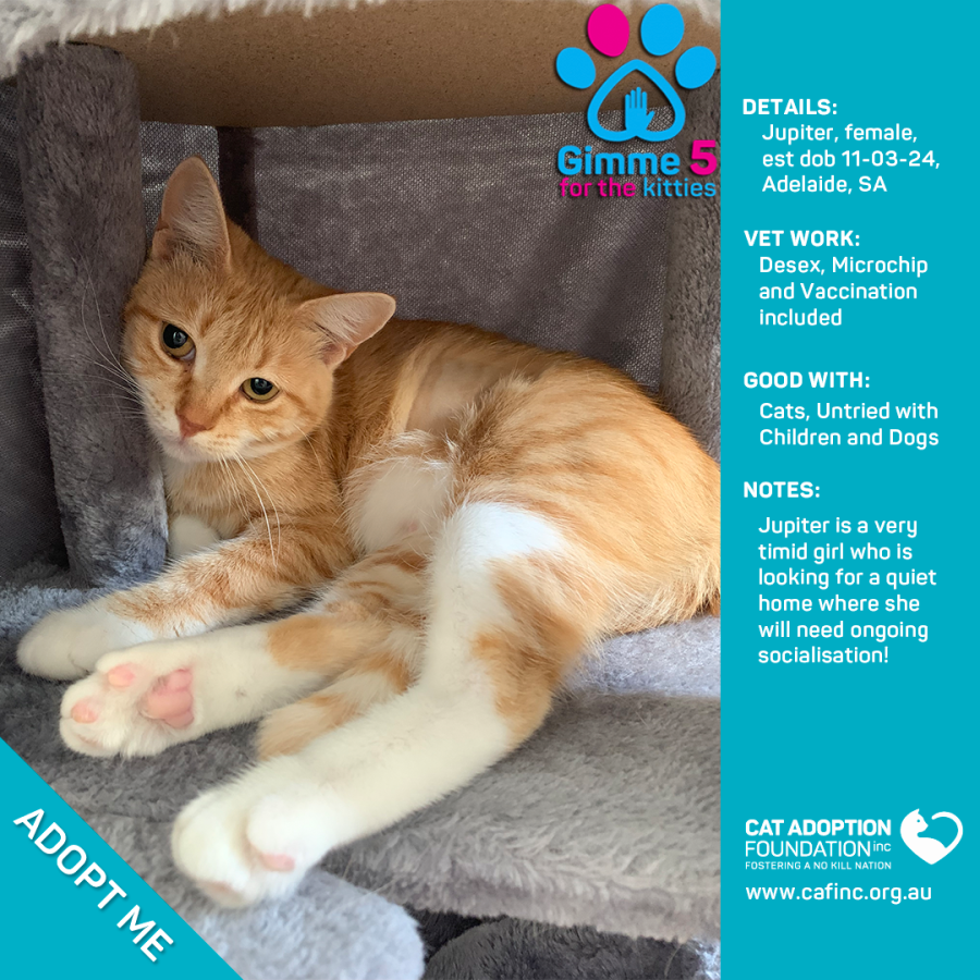 To adopt this kitty please contact Sayla on 0422 652 837 or email us at info@cafinc.org.au.