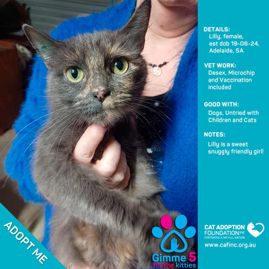 To adopt this kitty please contact Sayla on 0422 652 837 or email us at info@cafinc.org.au.