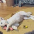 One of TonTon’s best traits is how well she settles at home when left alone, as long as she has a friendly dog companion. She usually just curls up, snoozes, and waits patiently for her people to come back.
