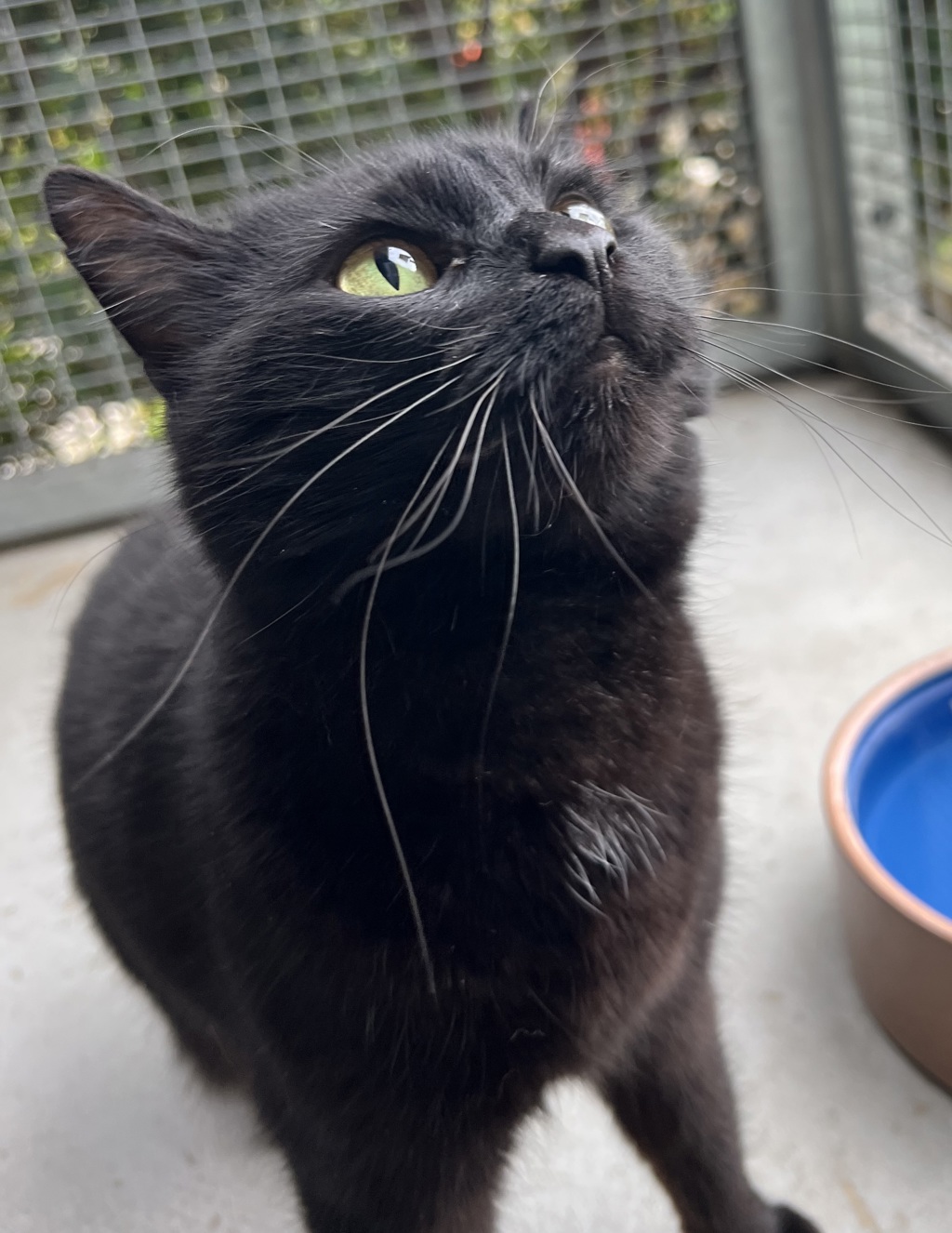 Meet Luci - a sleek, shadowy enchantress with eyes like molten gold and a purr that casts spells of calm. Mysterious and elegant, she glides through your home like a whisper, always watching, always knowing. Luci prefers moonlight to sunlight and velvet silence over noise - a true familiar for those with a touch of magic in their soul. She's independent yet loyal, appearing just when you need her most. Curl up with her and you might catch a glimpse of the unseen. Adopt Luci... if you dare to let a little magic into your life.