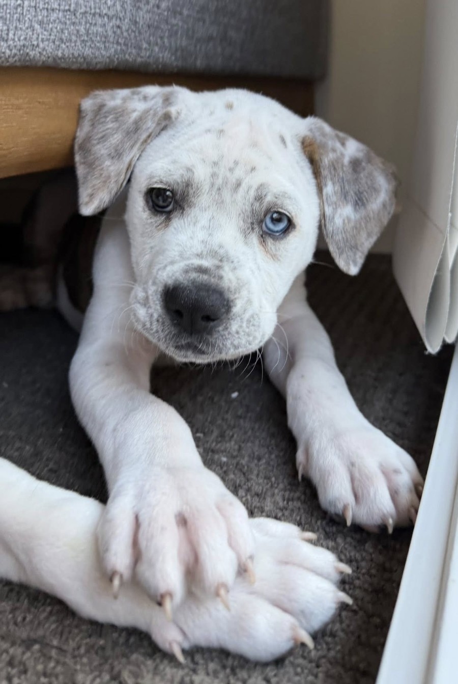 She is sleeping through the night in her crate and is making great progress with her toilet training. With her beautiful blue and green eyes and gentle nature, Tiffany is a truly special girl.