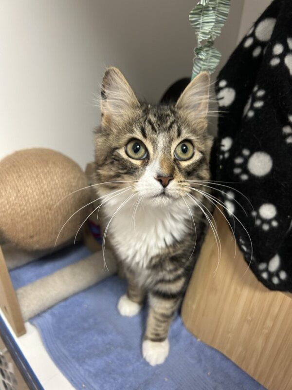 Hello there, I'm Willow! I'm a tiny 2-month-old Domestic Short Hair kitten. I may be small, but I'm filled with love and energy. Speaking of energy, I love to play! My favorite games involve chasing after toys and exploring my surroundings. I'm a curious little lady who's always excited to discover new things. I'm a female kitten with a soft, short coat that you'll love to pet. In return, I'll give you the sweetest purrs and show you how much I appreciate your love. Despite my young age, I'm already litter-trained, so you won't have to worry about that. I'd love to find a forever home where I can grow, play and be loved. A place where I can curl up in a warm lap at the end of a fun-filled day. Could that be with you? I promise to bring joy, laughter, and lots of cuddles into your life. Let's meet and create our own wonderful story together. I'm waiting for you!