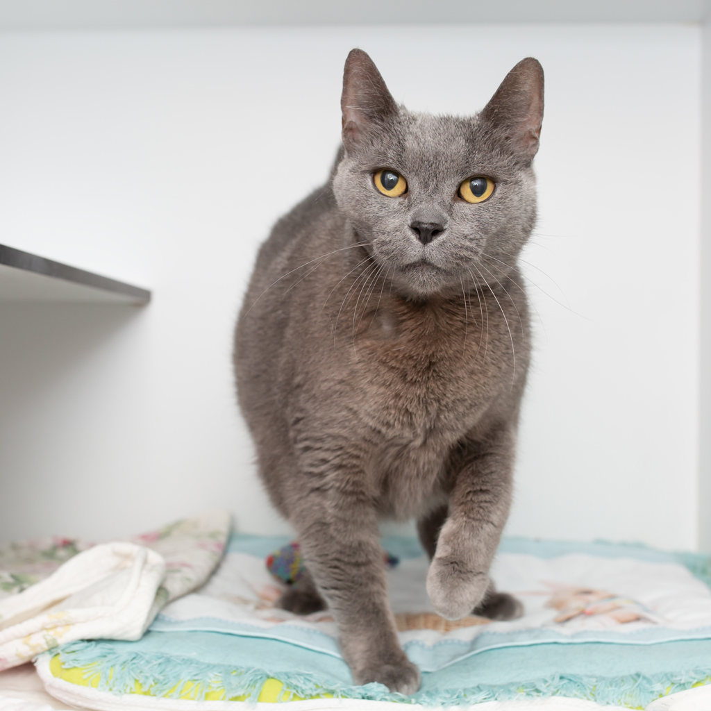 Being picked up isn't her favourite thing in the world, but she'll be more than happy to come sit with you on the sofa or the bed and cuddle up tight. Her playful years are well behind her. She's after a calm household where she can relax and go about her days at her own pace. She dreams of living her best life with one or two adult humans in a home where she can rule as queen of the house.