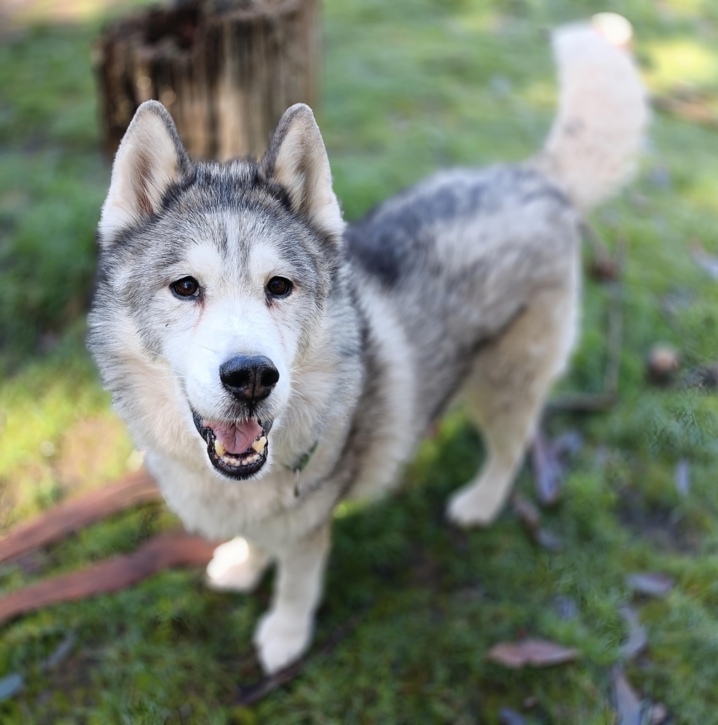 Meet Rocky, our charming senior male Husky who's looking for a loving home to enjoy his golden years. At his age, Rocky is gaining his health back and still has an adventurous spirit, thriving on walks and the occasional good run. This fluffy boy does require regular grooming to keep his beautiful coat in top shape. While he's lovable and affectionate, he can be a resource guarder around food, so he would do best in a home without children. An experienced Husky owner would provide the patience and understanding he needs, especially since he's sensitive about having his feet touched.