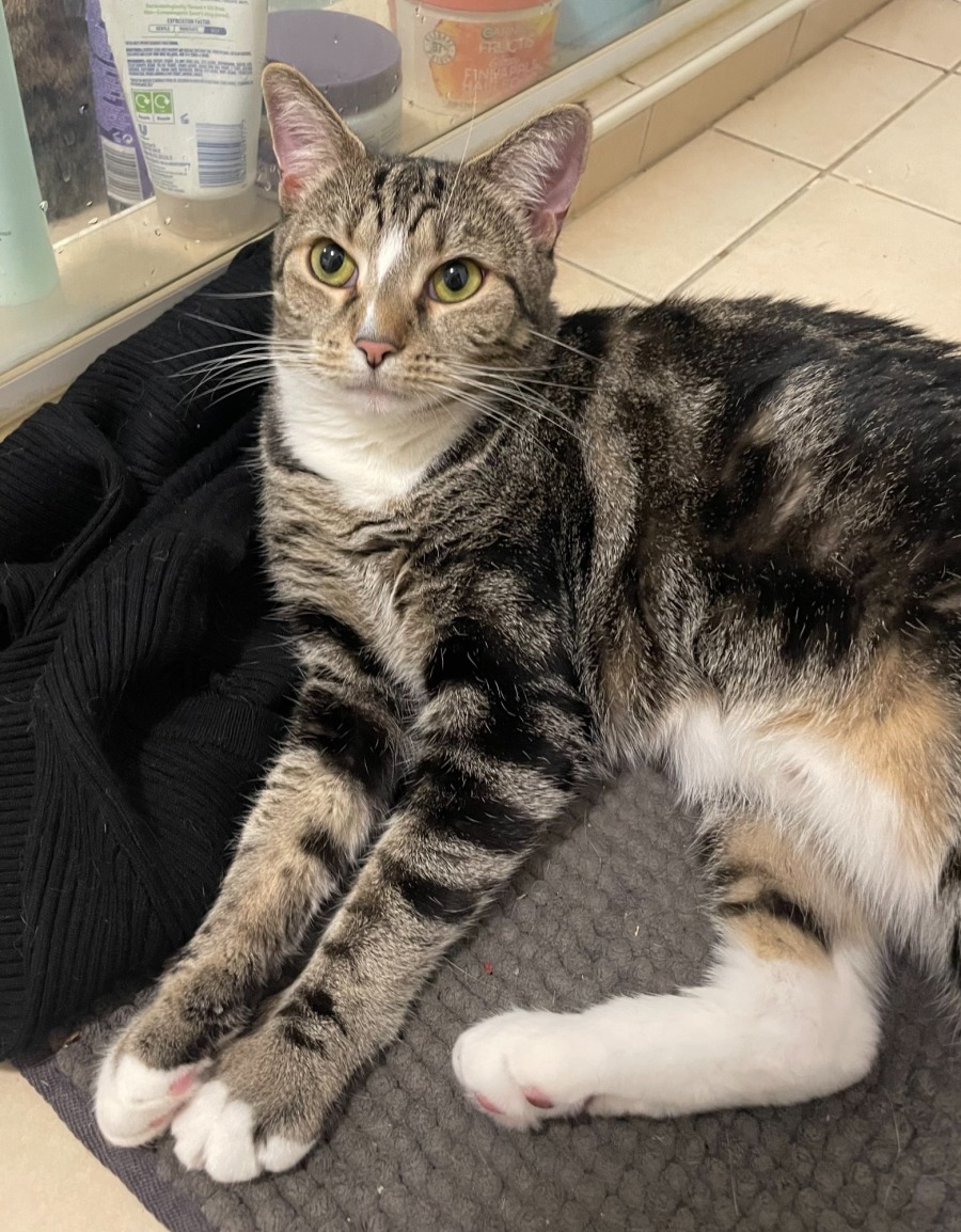 She gets on well with other cats and is a sweet fun lady. She is very laid back but also will not tolerate nonsense.