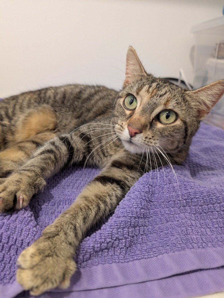 She’s a gorgeous little tabby girl with a coat as soft as a whisper and eyes that shine with quiet wonder. And inside that small frame beats a heart as warm and steady as her name.