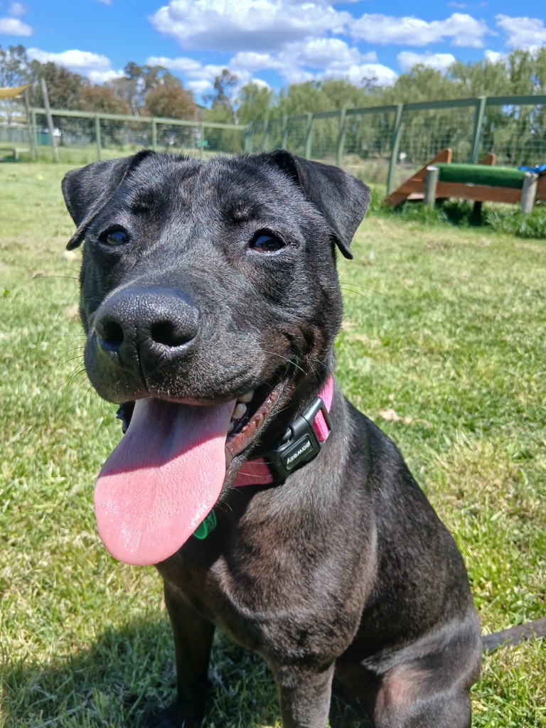 Looking for a partner-in-crime for hikes, beach days, and backyard zoomies? Rhea might just be your girl! This gorgeous Shar Pei x Staffy mix is nearly 2 years old and bursting with playful energy and curiosity about the world around her.