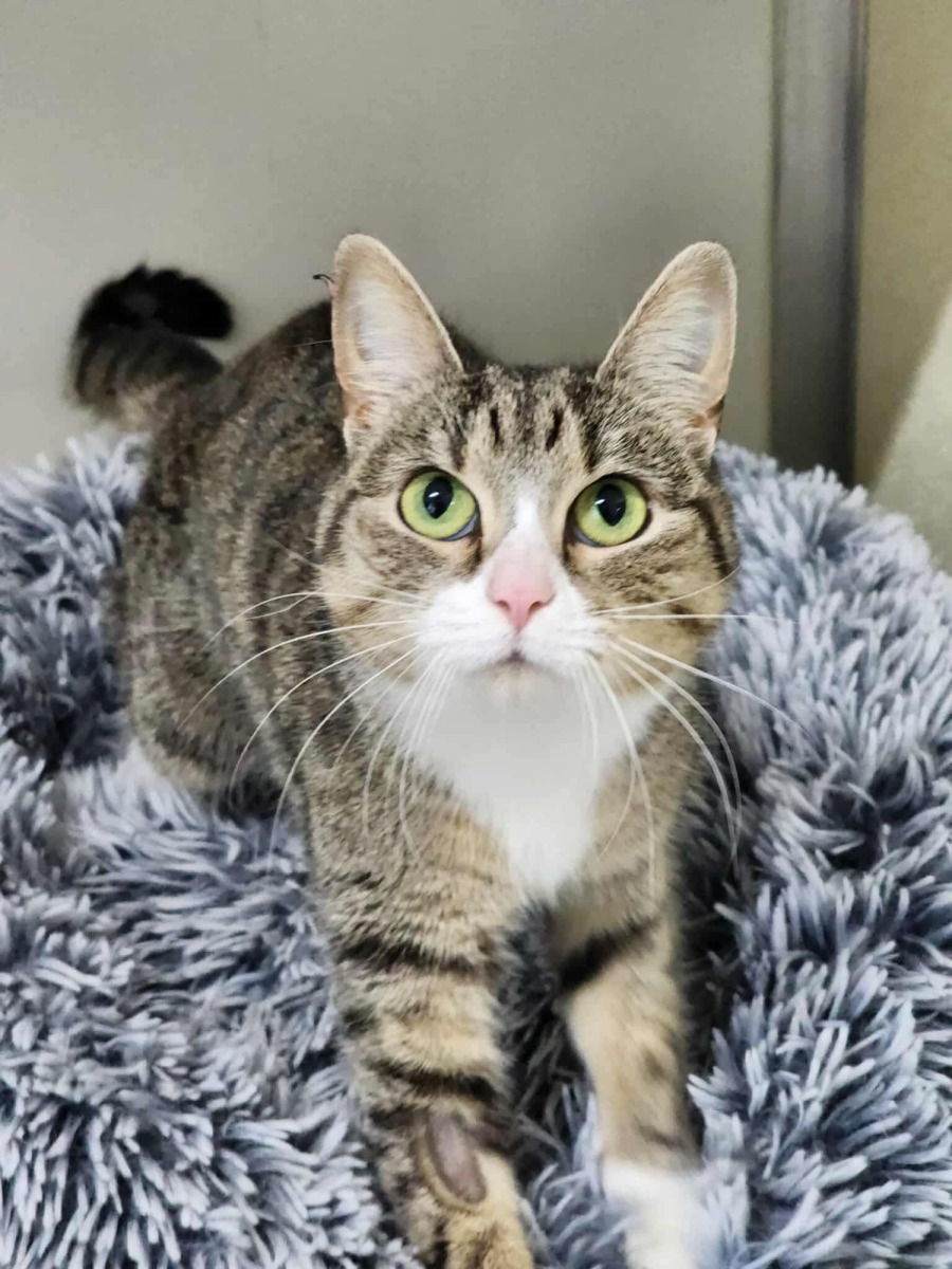 Introducing Mischief, a calm and affectionate cat who enjoys close companionship. She loves pats, cuddles, and spending time with her people, often happiest curled up in a warm bed or next to you on the couch.