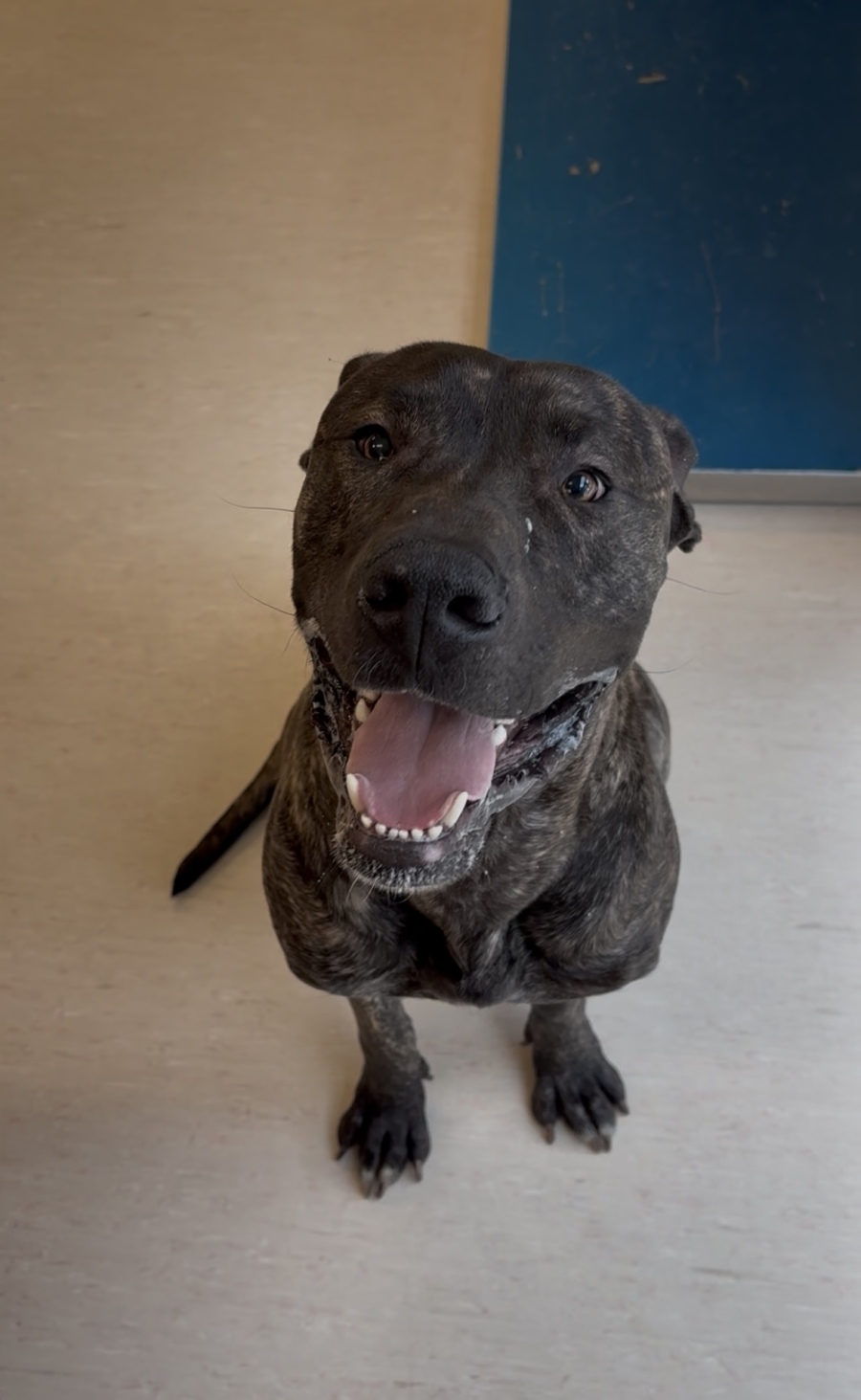 I’m an estimated 12mth old Great Dane x Dinosaur 🦕 Imma big boy at 45kgs and still growing! A family with large/giant breed experience would be best, as I also have a big bark. I’m here to protect and serve, also totally love people so, you’re going to have to be able to hang on until I get this lead training down pat.