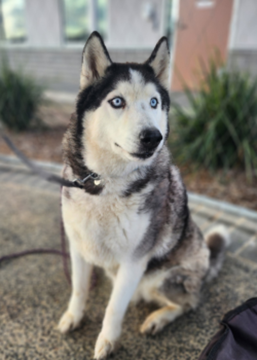 Damon is a stunning male Siberian Husky with a heart as big as his personality. At 9 years old, he’s still full of life, curiosity, and classic husky charm. Damon is looking for a committed, knowledgeable family who understands the quirks and needs of the breed.
