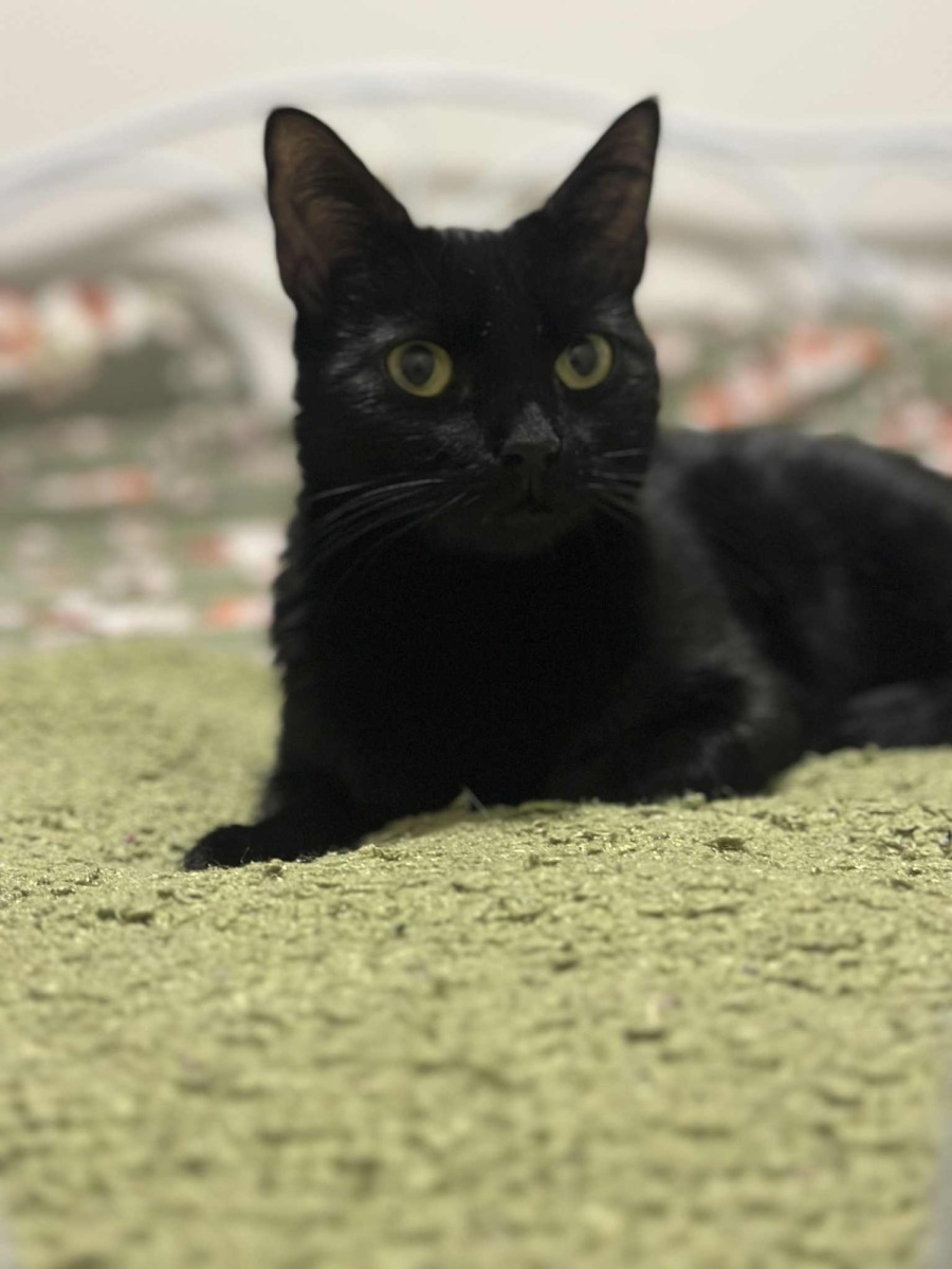 Olive is a sweet and affectionate girl looking for her forever home. She loves humans and adores being showered with attention and affection. This laid-back lady enjoys lounging on comfy beds and snoozing on the couch.
