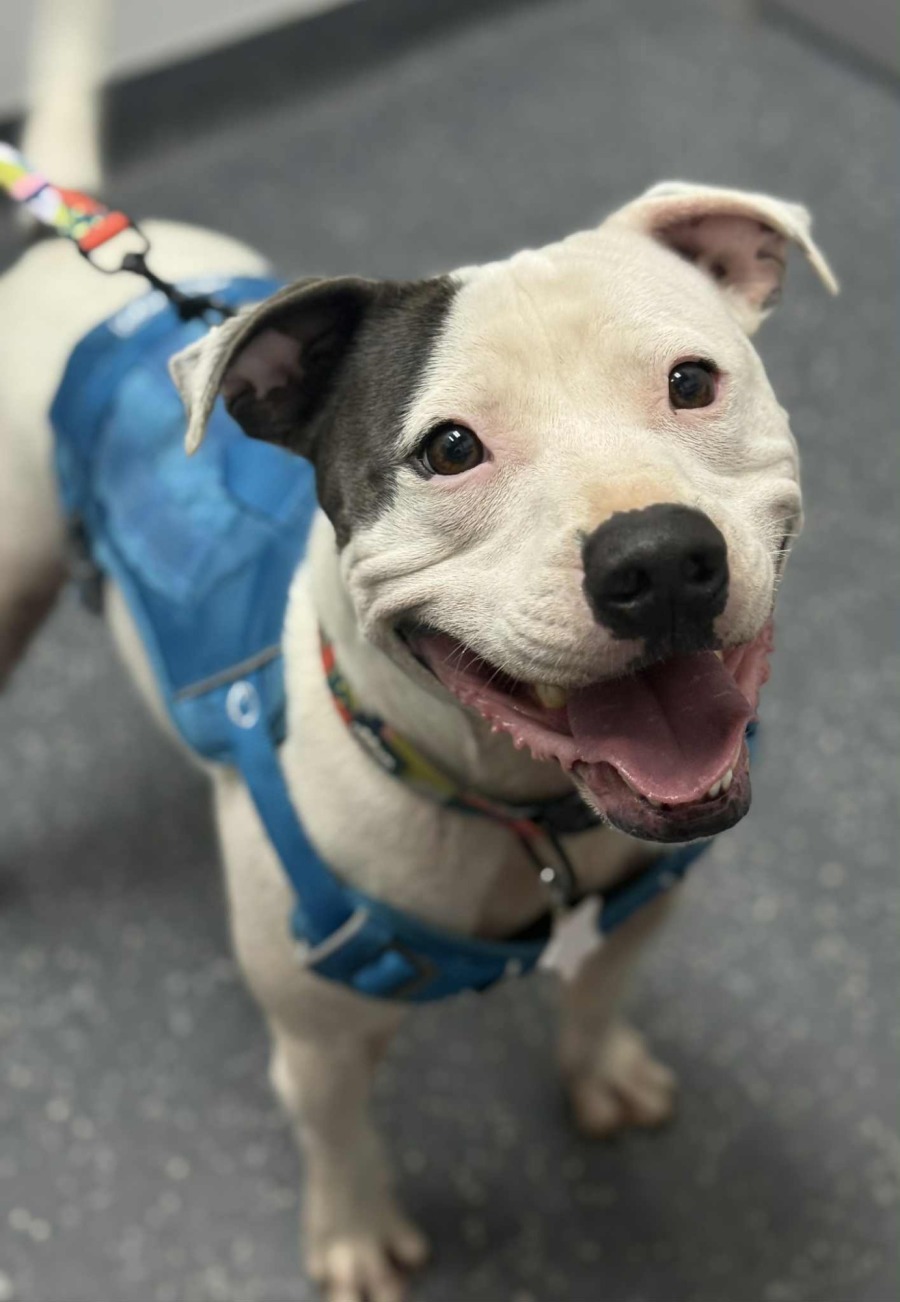 Meet Kobe – 4yr old English Staffy Extraordinaire If staffies had a poster boy, it would be Kobe! With his trademark staffy grin and “life of the party” energy, this boy is guaranteed to keep you smiling. Kobe is: A professional people’s dog – if you’re around, he wants to be with you. A social butterfly who LOVES other dogs… though he’s not above nudging them out of the way if they’re stealing his pats. A treat-powered genius – seriously, this boy would happily learn algebra if it came with snacks. A kid-loving, cat-approved companion who fits right into a busy household. Kobe’s looking for a family who understands the wonderful whirlwind that is a staffy. If you’ve got the energy, he’s got the love (and the wiggles).