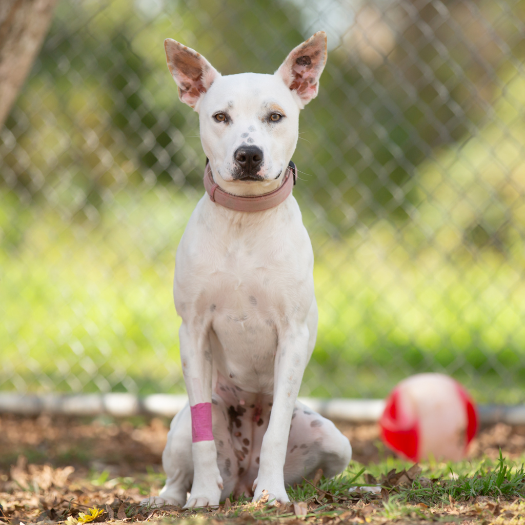 Just like her name, Daisy is a soft, gentle soul waiting to bloom in the right garden. This sweet American staffy has the kindest heart and the gentlest nature, but she's a little shy at first. Daisy needs a patient, caring person who can nurture her confidence and help her blossom into the happy, carefree dog she's meant to be.
