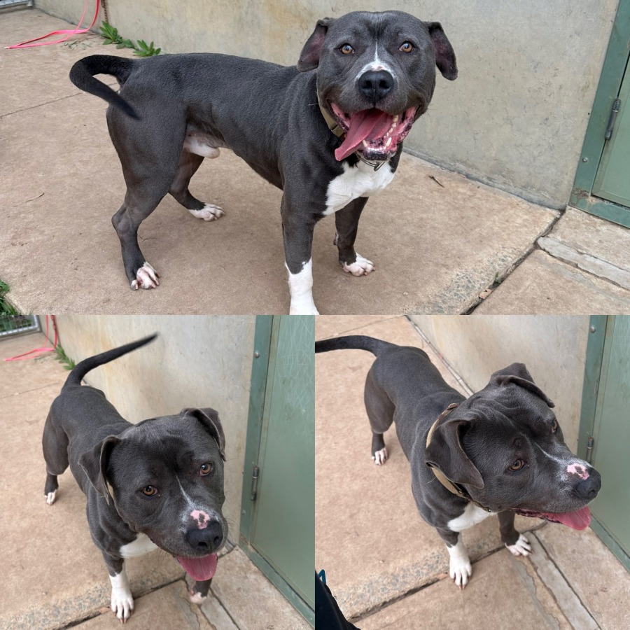 Say hello to Zeus, a gorgeous blue and white American Staffy with a heart as big as his smile! At just over 3 years old, Zeus is a sweet, affectionate boy who is now looking for a forever home after raising a beautiful litter of puppies – also available for adoption.