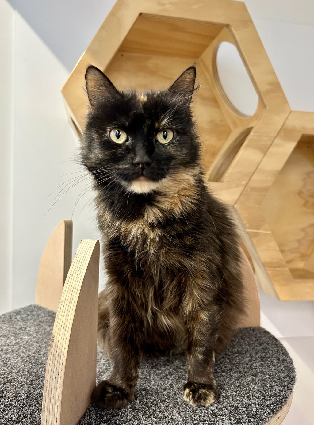 This special girl will do best in a larger space that allows her to stretch, explore, and engage with her environment. She would absolutely love a catio or secure outdoor access where she can safely enjoy the sights and sounds of the outdoors, but is not a necessity for her new home with the right amount of enrichment.