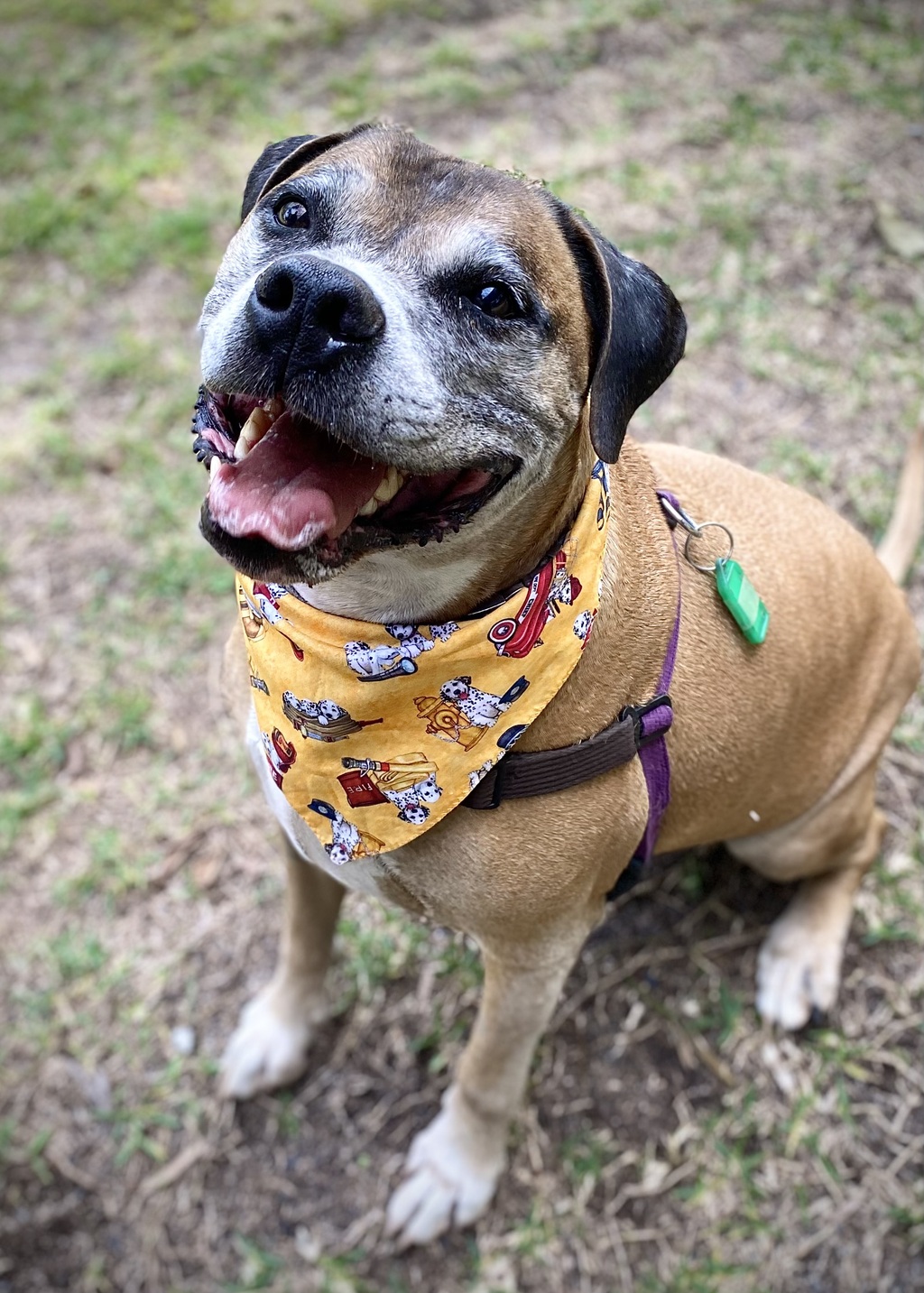 Then Buddy started making dog friends & life became even brighter for him :) He now has several dog pals in his life who he plays & goes on walks with. Initially he was frightened of his harness, now he will rush up to it & nudge it to remind you that it's time to go out for a walk!