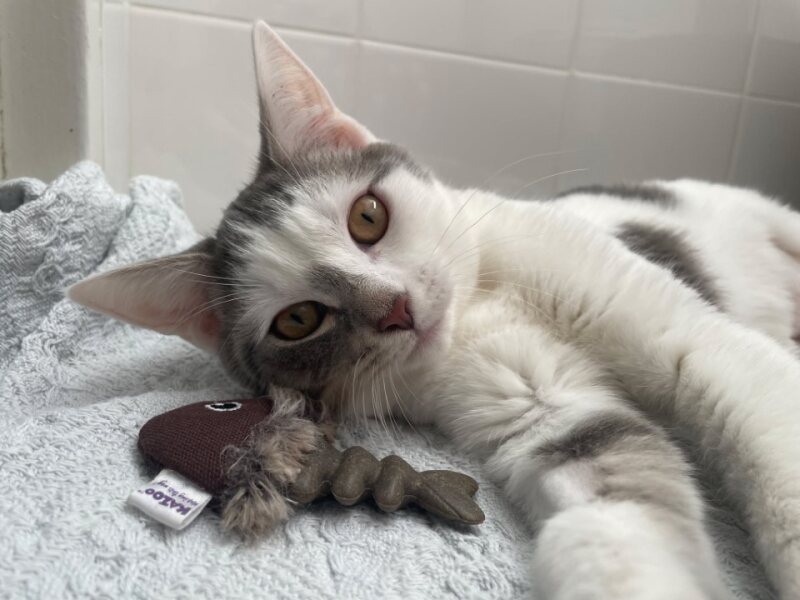 I’m still growing into my confidence, and I like to do things on my own terms. If I’m feeling a little overwhelmed or unsure, I really appreciate having a quiet space to retreat to until I feel ready to come out again. But once I trust you (and I will, with patience), I’ll show you my sweet side — I have a very gentle purr and a curious streak that comes out when I feel safe.