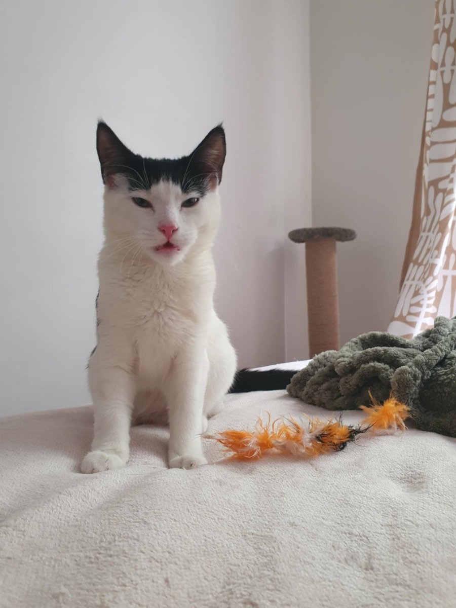 She gets along with other cats but does like to assert her status when food or her favourite toy is involved, with an adorable little growl to let everyone know she means business.