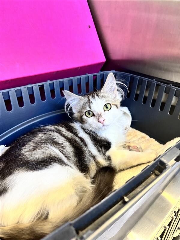 Hello there, my name is Sterling! I'm a playful and energetic 3-month-old male kitten with a love for fun. I'm a Domestic Medium Hair, known for my charming and cheeky personality. Don't be fooled by my youthful age, I'm a bundle of joy and full of curiosity. I enjoy exploring my surroundings, chasing after toys, and of course, a good old-fashioned snuggle. I promise to keep you entertained with my kitten antics. As a young guy, I have a high energy level, just like any other household cat. I'm always ready for a game or a quick sprint around the house. I believe a home with lots of toys and playtime would suit me perfectly. My fluffy coat is as soft as silk and as shiny as a polished jewel. I maintain it well, but a little help from you would be much appreciated. Adopt me, and I promise to bring lots of love, laughter, and a dash of mischief into your life. I can't wait to meet my forever family, could that be you?