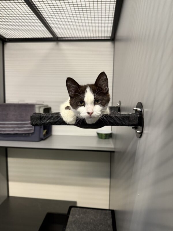 Hi there, I'm Calvin, a 4-month-old Domestic Short Hair boy with an energy level that's off the charts! I'm not your average household cat. I'm always on the move, exploring every nook and cranny, and am always ready for a fun game of chase or hide and seek. My short fur is super soft and just perfect for cuddling during our chill moments. I promise to make every day an adventure and fill your life with loads of joy and laughter. If you're looking for a playful and affectionate feline friend, I might be the perfect fit for you. Can't wait to meet my forever family!