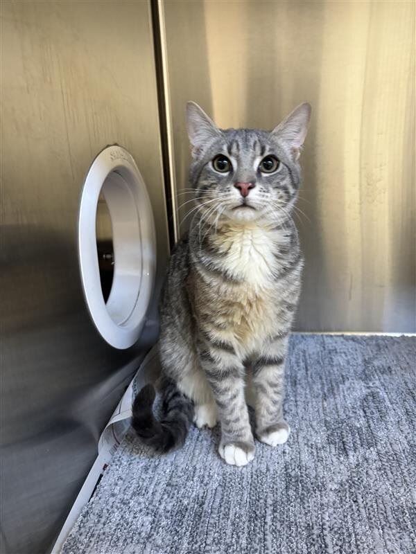 Hello there, my name is Legolas! I'm a 4-month-old male Domestic Short Hair kitten who's full of energy and ready for my forever home. Don't let my age fool you, I'm quite the adventurer and love to explore my surroundings. I'm a high-energy kitty, but I also enjoy my downtime with lots of cuddles and purrs. I get along well with everyone and have no known issues with children. However, I do need a bit of special care. Before you take me home, I'll need a veterinary consult. I promise I'm worth it! So, if you're looking for a fun-loving and affectionate feline companion, I could be the purrfect fit for you. I can't wait to meet my new family and start our journey together!