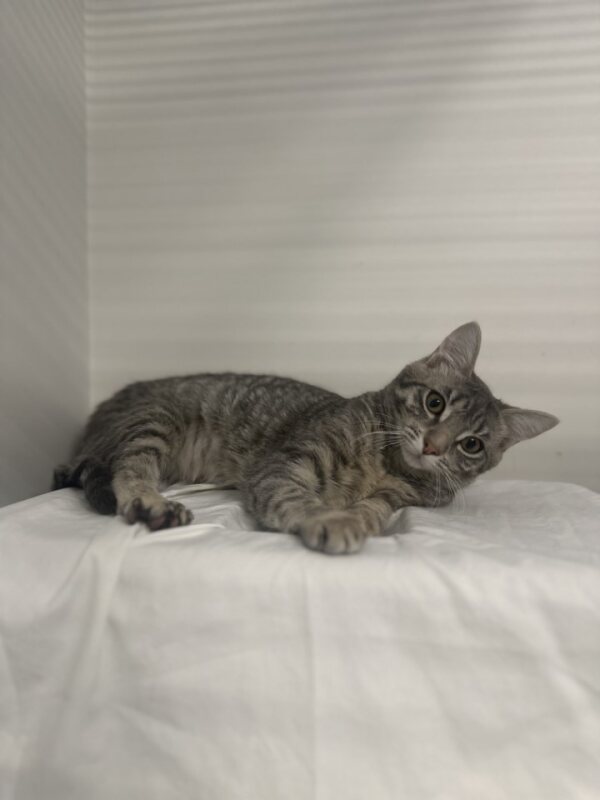 Hey there, I'm Lobelia! I'm a 4-month-old Domestic Short Hair kitten with a heart-shaped nose and a penchant for purrs. Don't let my young age fool you, I'm full of curiosity and love to explore every nook and cranny. I'm a little girl who's always ready to shower you with affection and play with my favorite toys. I'm not your ordinary kitty, my playful antics are sure to keep you entertained and your heart warm. I'm looking for a loving home where I can grow and thrive. If you're searching for a feline companion who's full of personality and charm, look no further. I can't wait to meet my forever family and start our wonderful journey together. Purrhaps, it's you?