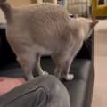 Justi (darker) is every bit the introvert that her sister is the extrovert. She can usually be found tucked away napping somewhere high and out of sight. Her ability to find new hiding spots 🪜 is unmatched. She is incredibly acrobatic and will often leave you asking “how did you get there?!”. When she comes out, she is a sweet and gentle girl and will happily accept a cuddle. She’s also a lot more engaged during play time than her sister 🎾.