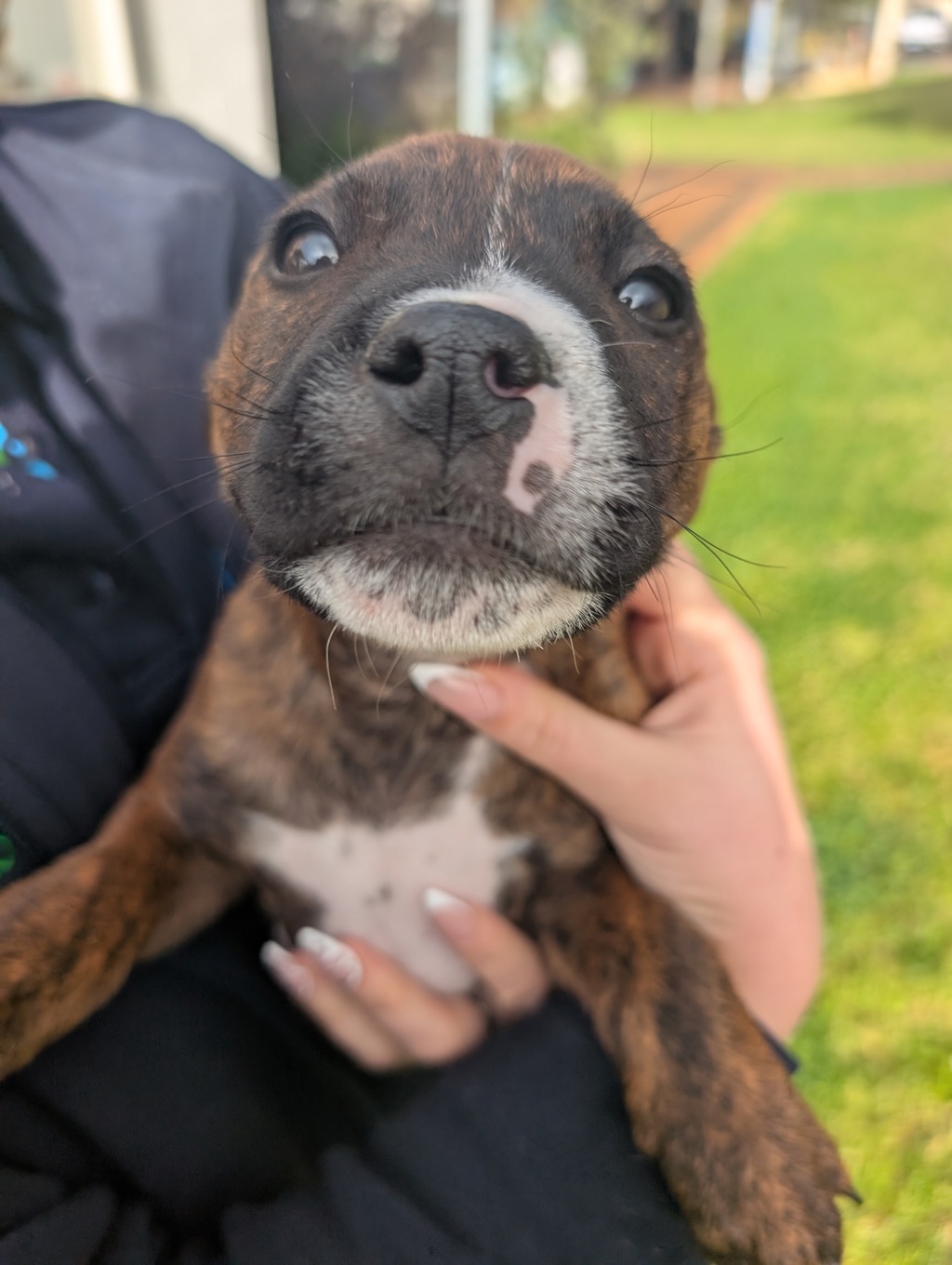 Right now, I'm just beginning to learn all about life - things like meeting new people, other animals, and figuring out the best way to behave. Socializing and training are super important for me to grow up happy and confident, so I'll need a family (kids 15+) who understands that I'll need lots of patience, love, and consistent teaching.