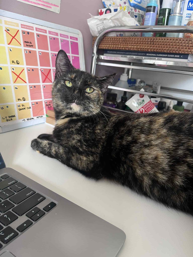She enjoys human and cat companions alike, and would like nothing more than to be your new shadow as you go about your day. She doesn’t shy away from guests or other furry pets, and has a calm and curious energy that makes her the perfect feline friend. Despite enjoying being around others, she’s highly independent and happy to have alone time too.