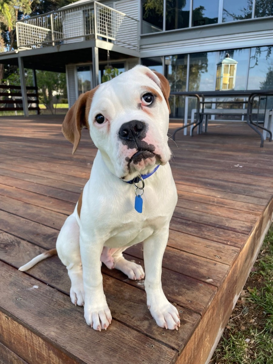 Nate if a boxer cross puppy with the sweetest, softest heart. While his name might sound strong and confident, this little guy is actually a bit timid when he first meet new people or faces new situations. With patience and gentle encouragement, Nate quickly warms up and shows just how affectionate and loving he really is.
