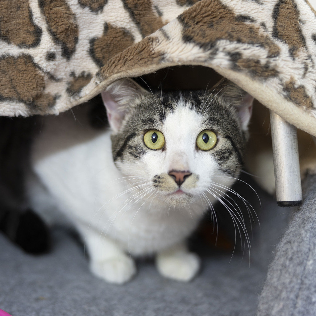 I'm a 2-year-old male cat with a big heart and an even bigger love for cuddles! I'm friendly, gentle, and honestly... I just can't stop smooching. If you're looking for a snuggly shadow who'll follow you around and shower you with affection, I'm your guy.