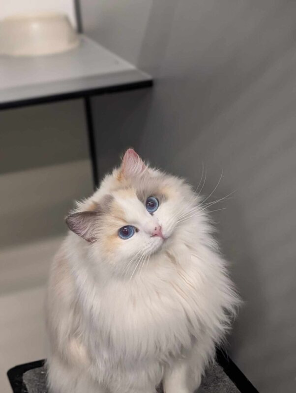 Hello there, I'm Juniper! I'm a 2 years and 8 months old Ragdoll cat with a soft, fluffy coat that you won't be able to resist cuddling. I'm a gal with an average energy level - I enjoy a good play session, but also appreciate a nap in the sun. I'm very social and love to be around people, so I'd be the perfect addition to any family. I'm also great with kids, so no worries there! My gentle nature makes me the perfect companion for both playtime and relaxation. If you're looking for a beautiful, loving, and playful family cat, you've found her! I can't wait to meet my forever family and start our life together. Will it be you?