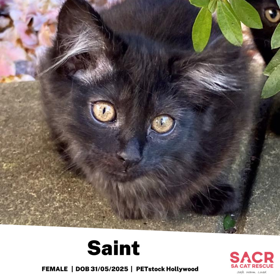 Saint's adoption fee is $195 which includes desexing, microchipping, parasite prevention, and initial F3 vaccination.