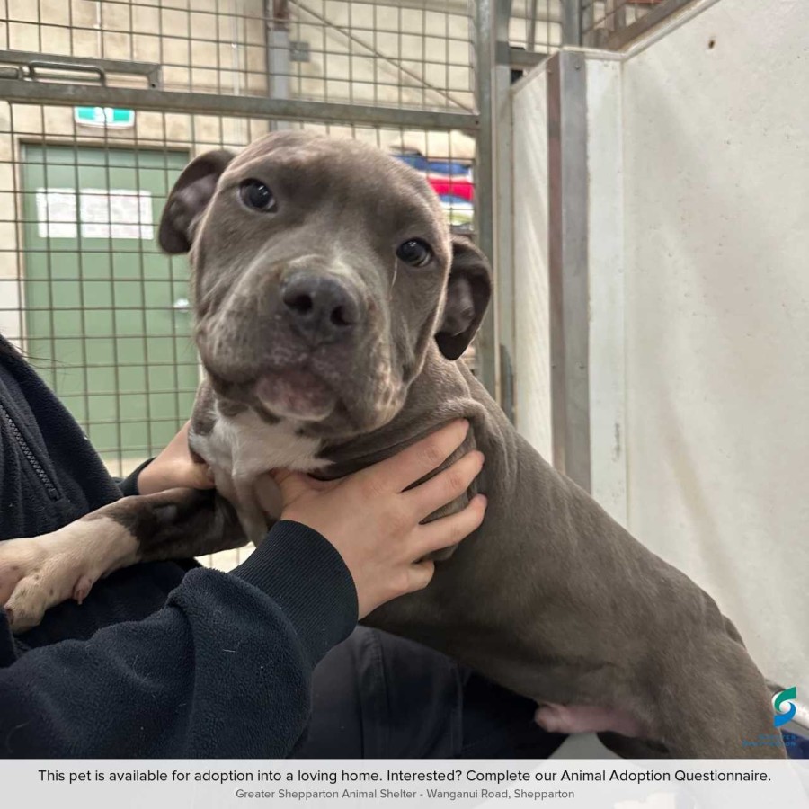 Introducing Freddy, a 4-month-old American Staffy pup with the softest blue and white coat and the sweetest soul to match! š One of the adorable litter of 10, Freddy is now ready to find a forever home filled with love, fun, and belly rubs.
