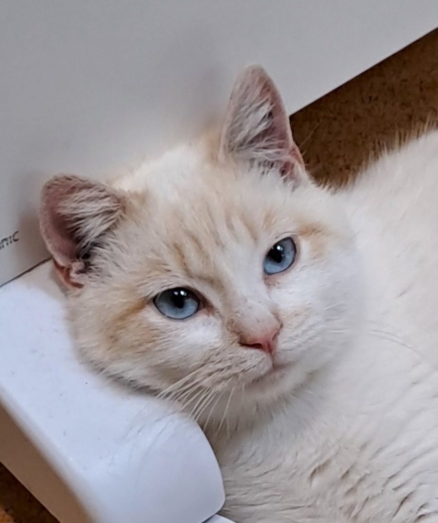 This darling cat can hit the high notes. Due to his Siamese heritage he's very vocal, particularly when he feels the need for his humans attention.