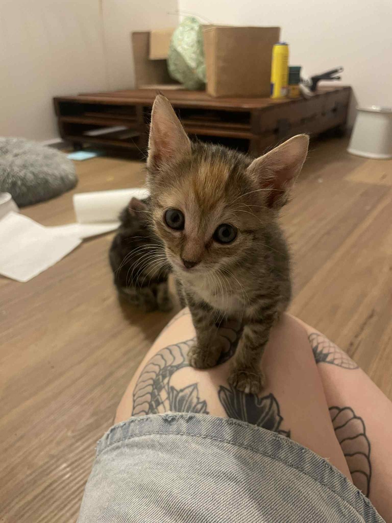Almost lost her mum to a retained kitten, Furiosa was the smallest out of the lot and has received supplemental feeding to keep up with the others.