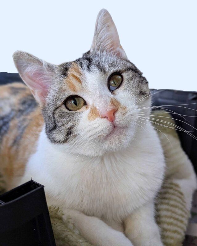 Hi there, I'm Stevie! I'm a 7-month-old female kitten with a coat as soft as a cloud, thanks to my Domestic Short Hair genes. I have a pretty average energy level for a young cat like me, I love to play, explore, and take long naps in the sun. I have no known issues with children, so I think I'd fit right in with a family that will shower me with love and attention. I'm a bit of a social butterfly and I love making new friends. I'm also a quick learner and I'm happy to adapt to your routines. I can't wait to find my forever home where I can grow, learn, and experience all the love and warmth a family has to offer. Looking forward to meeting you!