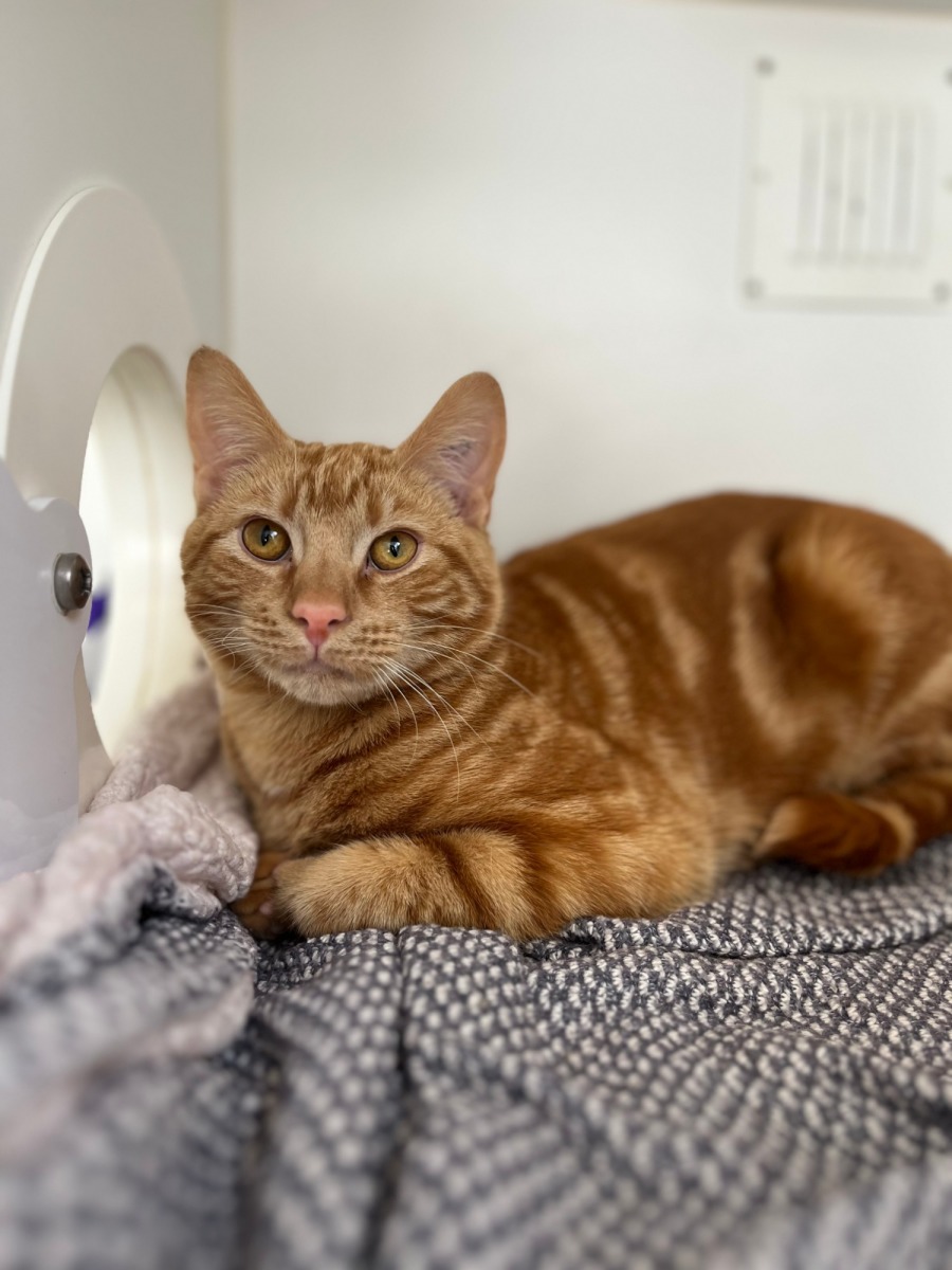 Sampson is a gentle soul with a heart as warm as his soft ginger fur. Though he may be a little shy when you first meet him, it doesn’t take long for his sweet personality to shine through. He’s the kind of cat who prefers quiet companionship and will happily curl up near you, content with the calm presence of someone kind.