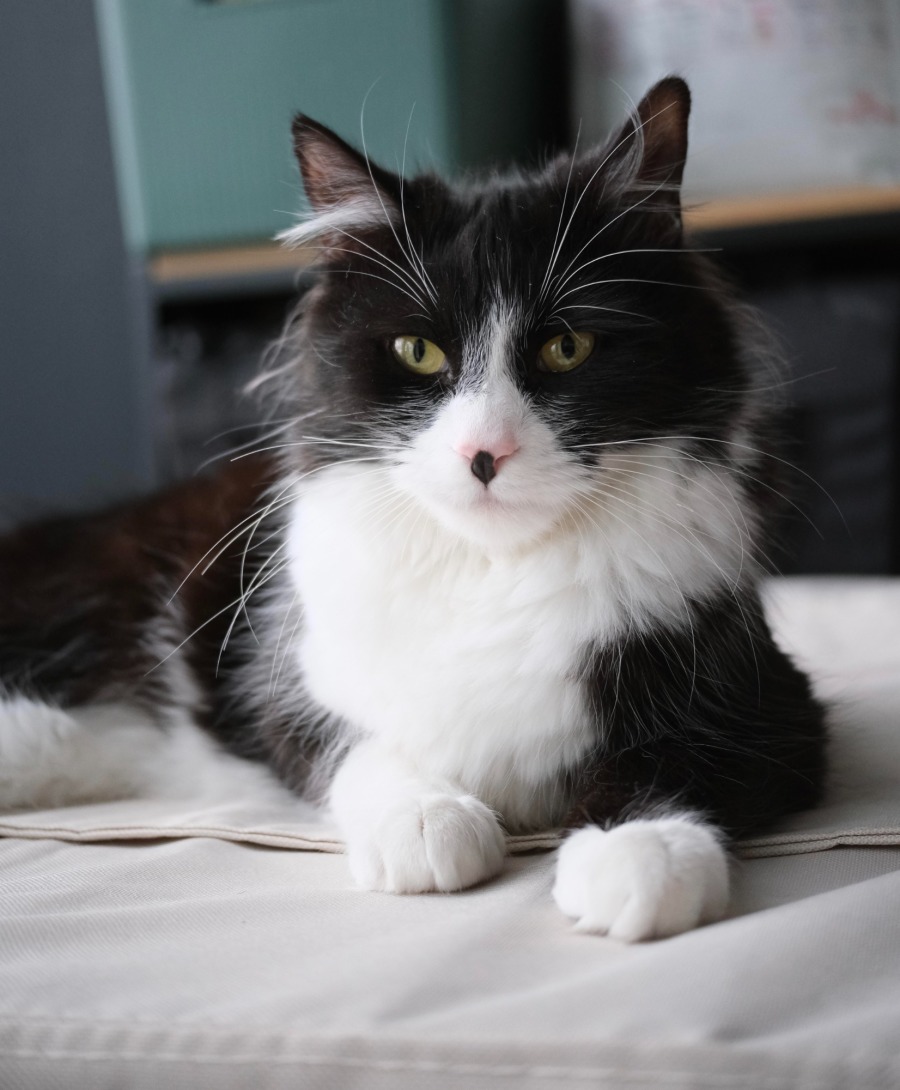 Heidi is a true people-cat. She loves being around her humans and will follow you from room to room just to be near you. She's a bit of a cuddly, needy girl and will rub against your legs and demand pets and scratches. She has a wonderfully calm demeanor and is happy to just chill out. While she adores your attention, she's also great at keeping herself entertained, so you'll often find her happily playing on her own.