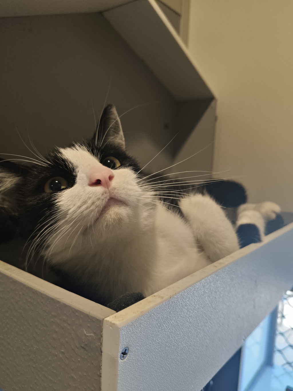 Hi there, I'm Squiggy! If you're looking for a gentle companion, I'm your cat. I love spending my days lounging around, enjoying quiet moments with my human friends. I'm very friendly and cuddly, always ready for a good petting session or a cozy nap in a warm lap. I thrive in a calm environment where I can share all my affection. If you want a mellow and loving friend to share your days with, I promise to be the sweetest addition to your family. Let's make wonderful memories together!