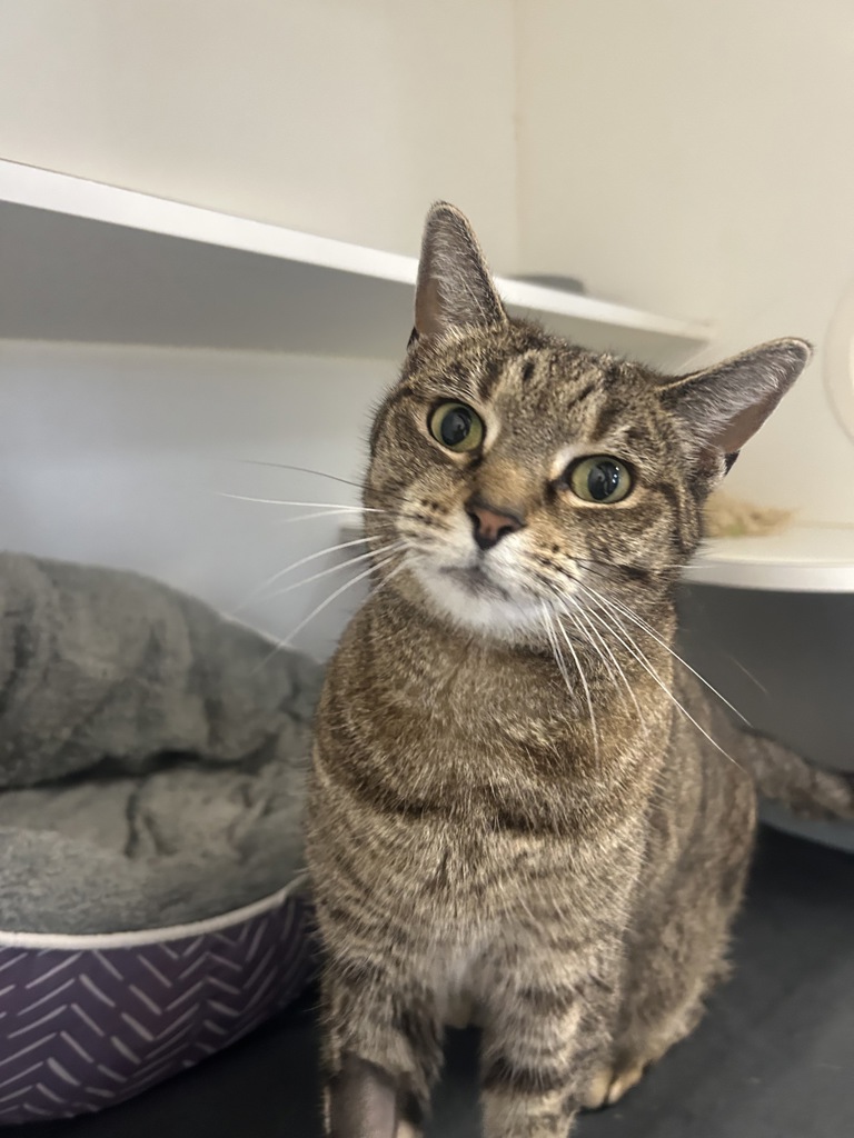Willow is a beautiful 7-year-old tabby with soft stripes, bright eyes, and a calm, thoughtful presence. She may be a little shy when she first meets you, but with patience and kindness, she slowly reveals her warm and loving nature.