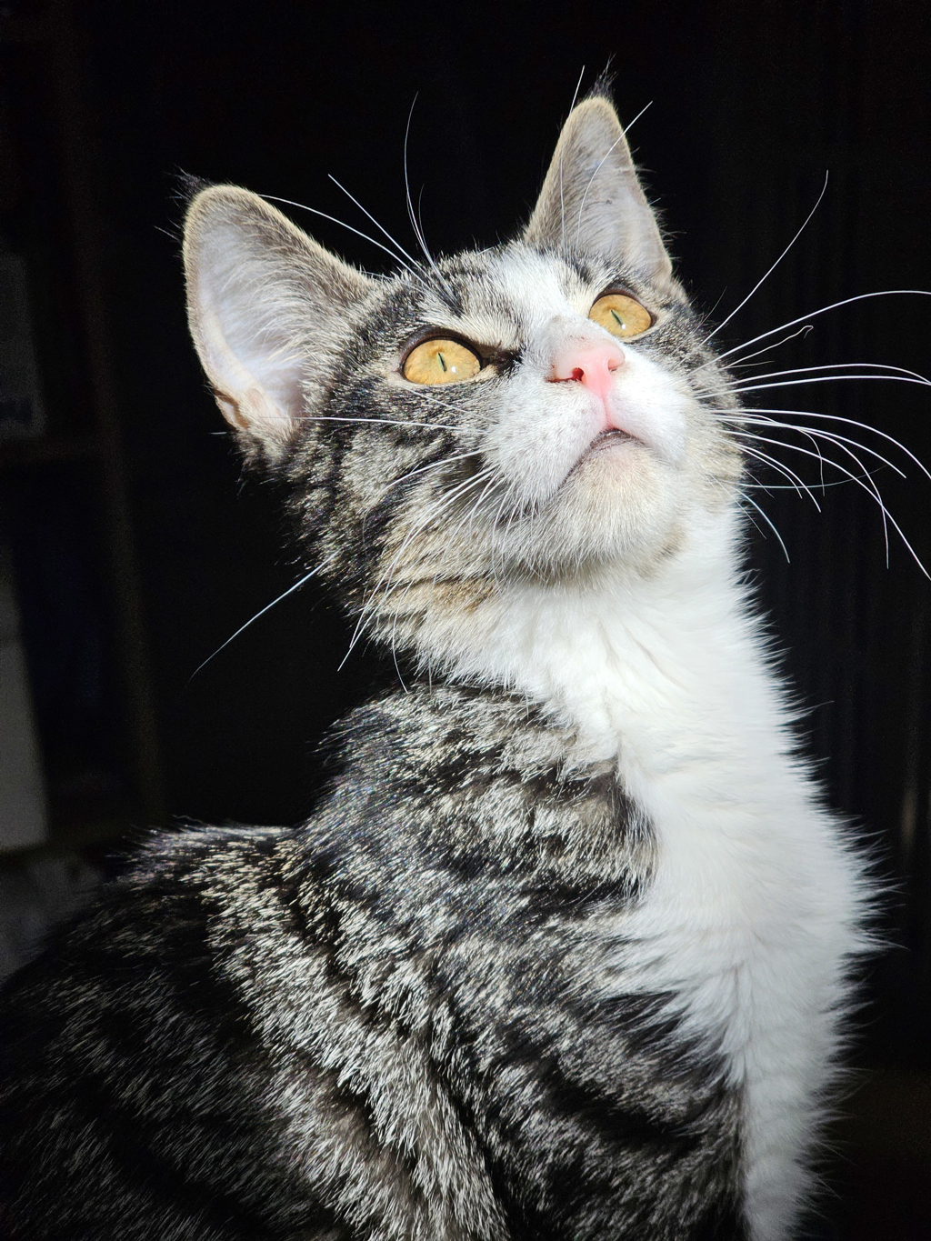 Louis is a 5-month-old bundle of love wrapped in soft fur and gentle purrs. Timid at first, this sweet boy takes a little time to trust-but once he does, you'll be his entire universe. He'll follow you from room to room, curl up under the blankets for cuddles, and purr like a little engine of affection.