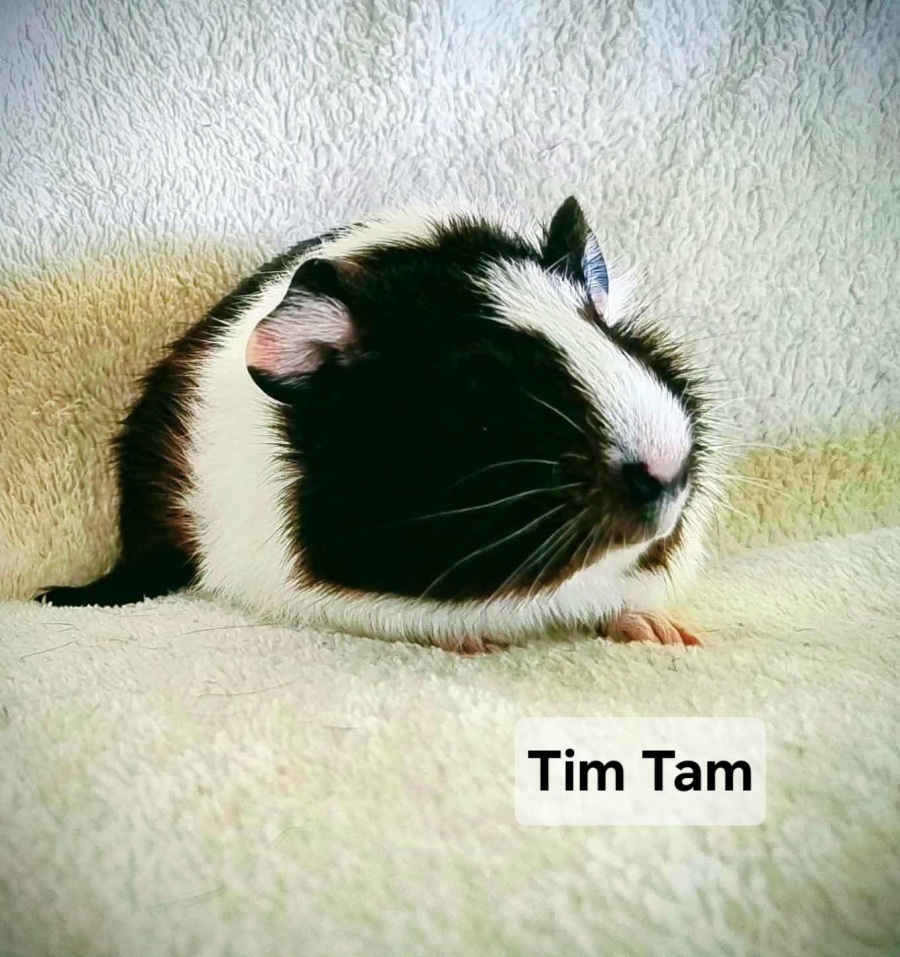 Please meet Tim Tam her birthday is 05/08/2025 so at the moment she is 1 month and 7 days old. Unfortunately she is a bit of a wiggler trying to get a proper photo. She loves her veggies and will do zoomies and popcorn in her cage.